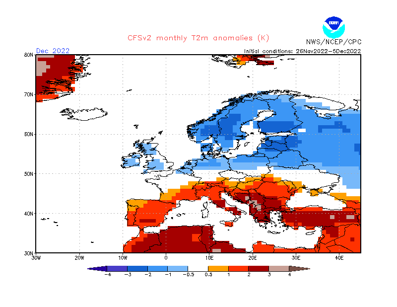 Вместо симпатична животинка, по изключение слагам месечната прогноза на НОАА за остатъка от декември.