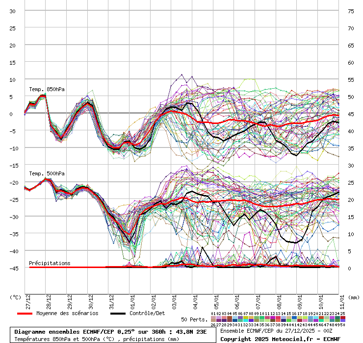 Времето до Нг, от утре до 31: И слънце, и облаци – променлива от не- до значителна, в Дунавската – повече слънце. Почти непрекъснат вятър, от северозападната четвърт. Минимални най-често от минус 5-6 до около нулата. Малко по-високи на 30.12, малко по-ниски на 31.12. Максимални: От 3-4 докъм 8-9, малко по-ниски по високите полета на запад, малко по-високи пак на 30.12, до 12-13 на места. Зима. 🙂 На 31 обаче, нема мърдане, много студена ВМ влиза, ще бъде от минус нещо, няколко под нулата до около нулата. максималните тва. Вижте долния ансамбъл от последния ЕС.
